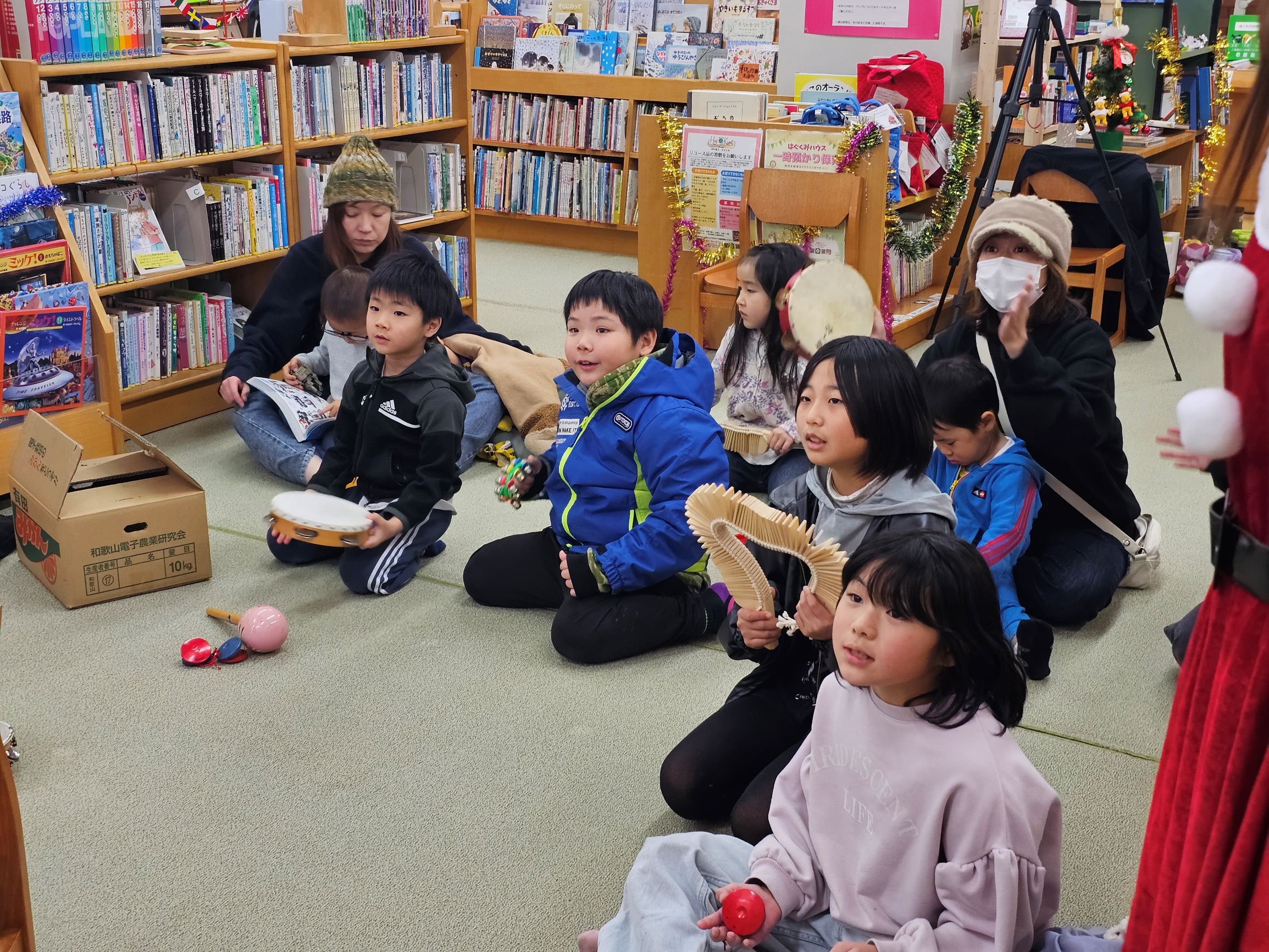 また、「ジングルベル」ではみんなで楽器を。「サンタが町にやってくる」ではちゃちゃさんの振り付けのもと、ダンスを参加者のみんなで行いました。